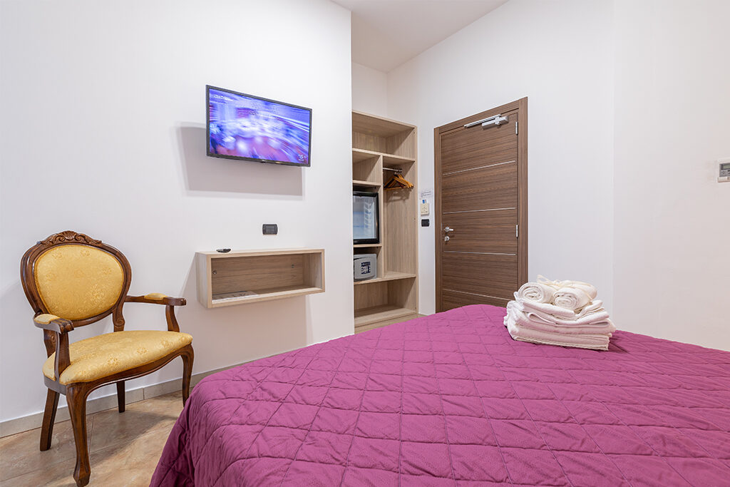 La camera dispone di max 4 posti letto: letto matrimoniale con sommier adatta per 2 persone.